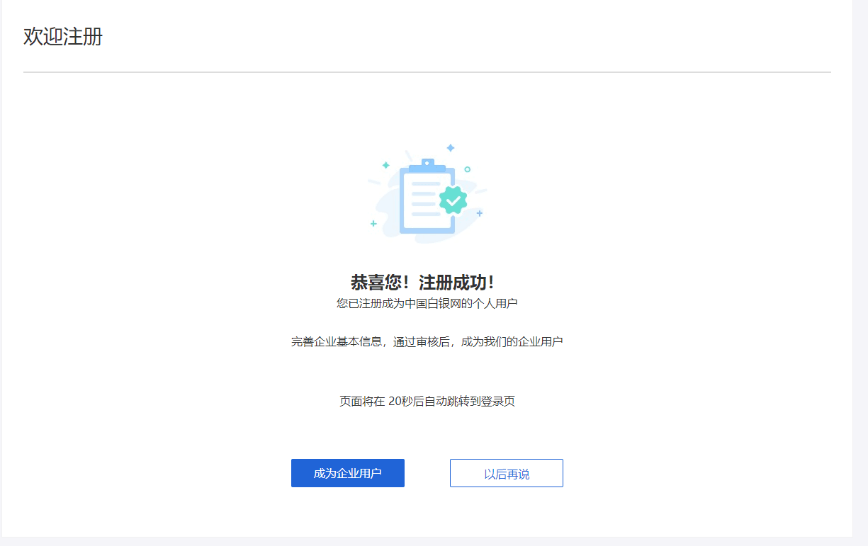 1.注册成功页面中的点击“成为企业用户”,进入企业认证页面。