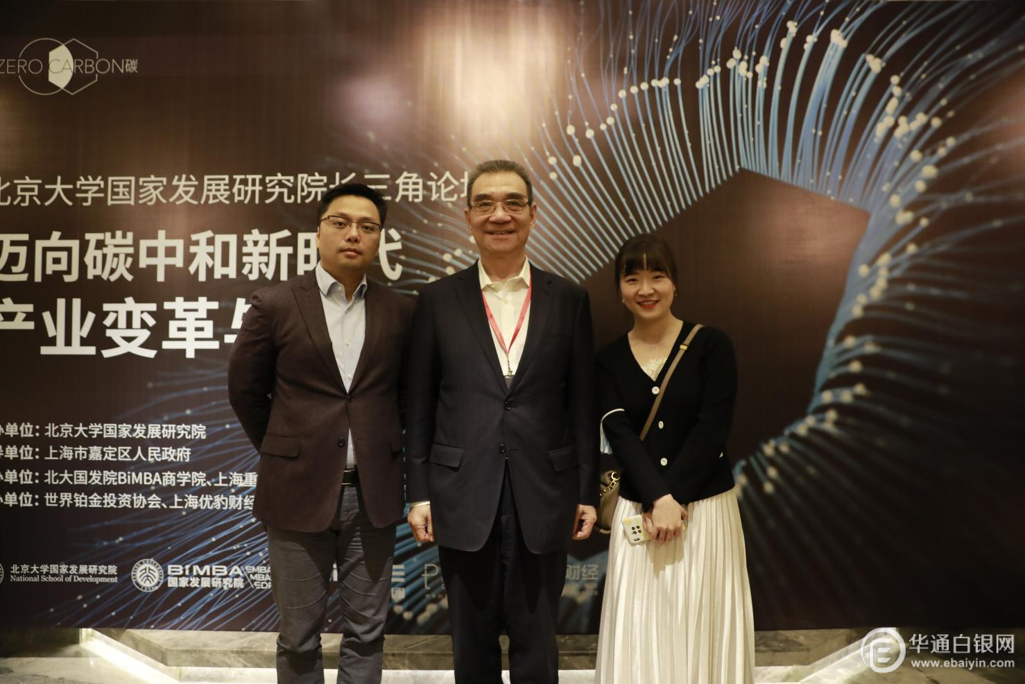 邓伟斌先生与全国政协常委、国务院参事林毅夫(中)在2021北大国发院长三角论坛合影