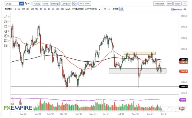 在周一的交易时段,黄金市场反复波动,再次显示出混乱的迹象。在这种情况下,市场目前正守在1,750美元的水平,这一领域的重要性已经不止一次了。正因为如此,市场很可能会继续出现许多嘈杂的行为,因为我们正在决定市场是会走强还是崩溃。毫无疑问,市场的最大推动力之一将是美元,所以需要密切关注美元指数。美元和黄金之间存在巨大的负相关性,此外,我们还必须注意收益率。