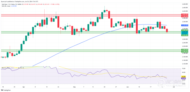 【华通网6月27日讯】•受美元走强和债券收益率上升的压力,金价跌至两周低点。交易商等待美国通胀数据,关注个人消费支出价格指数以了解美联储利率。