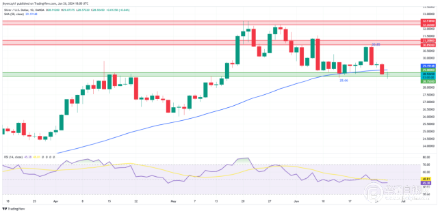 银价下跌,反映出其他贵金属的疲软,因市场在美国关键通胀数据公布前保持谨慎。美国个人消费支出(pce)通胀数据对美联储货币政策至关重要。由于降息的不确定性,该数据令贵金属承压。旧金山联邦储备银行行长mary daly等官员强调,在通胀趋向2%之前,有必要保持利率稳定。美联储的谨慎立场加大了压力。即将发布的个人收入和支出报告,包括通胀数据,以及第一季度gdp最终数据,都是市场进一步走向的高度预期。
