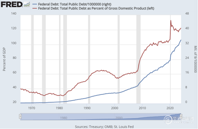 根据美国国会预算办公室的最新预测,到2034年,扣除利息,美国联邦政府将花费全国年度经济产出的4.1%来偿还债务,这是至少60年来的最高比例。