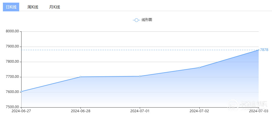 7月3日,上海华通铂银国标一号银定盘价报7830元/千克,较上一交易日上涨68元/千克。