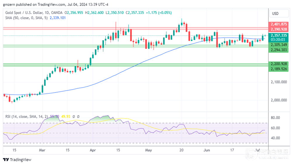 【华通网7月5日讯】•黄金继续试图收于2360美元上方。