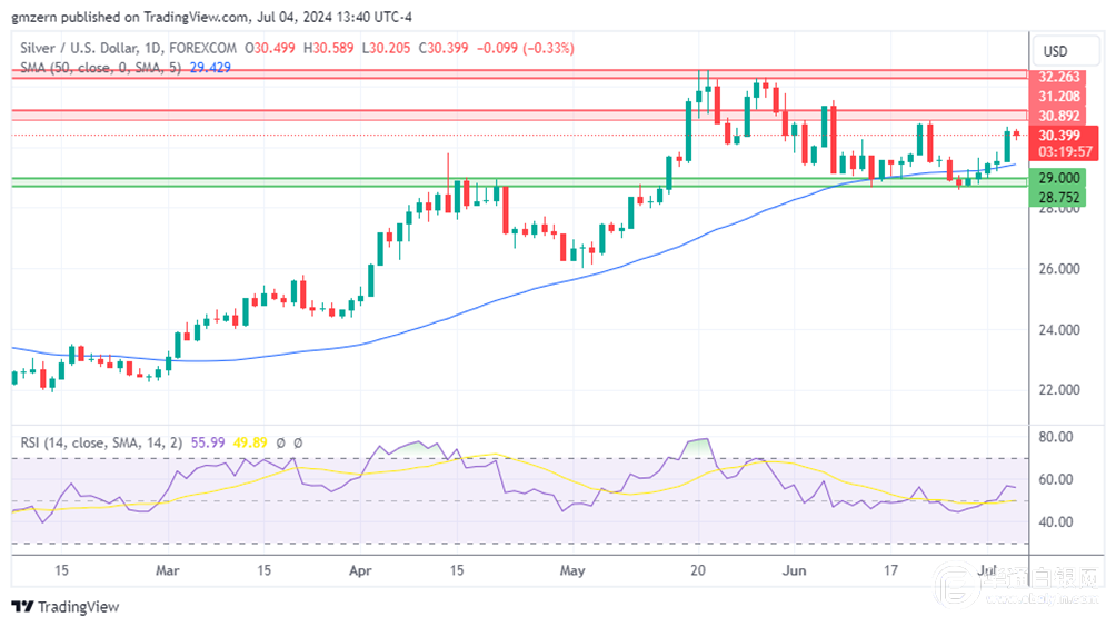 从技术面来看,白银需要稳定在30.90-31.20美元阻力位之上,才能获得额外的上行动力。