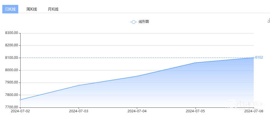 7月8日,上海华通铂银国标一号银定盘价报8198元/千克,较上一 交易日上涨137元/千克。