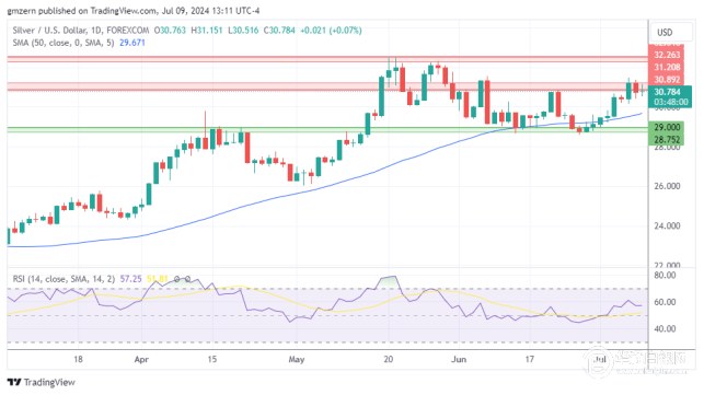 突破31.20美元将推动银价向下一个阻力位32.25-32.50美元前进。