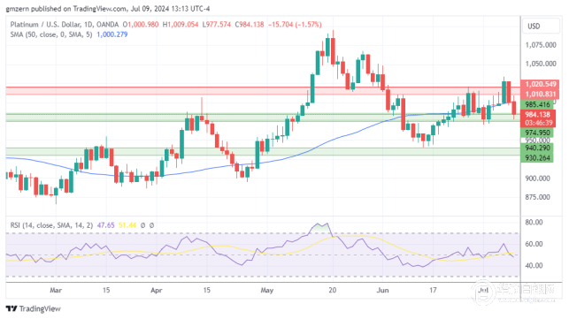 •铂金测试975-985美元支撑位。