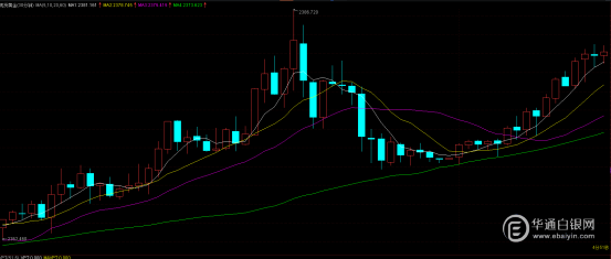 技术层面上看,日线图金价处于高位震荡走势,在布林线上轨附近受阻后,录得k线组合,周三路上长上影线k线,暗示上方阻力较强,短线金价震荡回落的风险有所增加,初步支撑参考10日均线2355.64附近,强支撑在布林线中轨2336.50附近,若失守该支撑,则增加后市看空信号。不过macd金叉信号仍在,若金价强势顶破布林线上轨2387.83附近阻力,则有望启动新一轮上涨,进一步阻力参考2400关口,甚至有望向历史高点2449.88附近位置发起冲击。