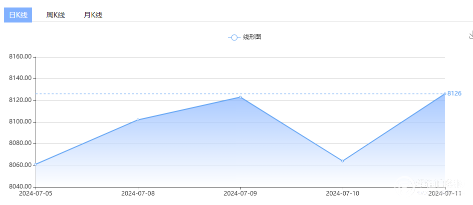 7月11日,上海华通铂银国标一号银定盘价报8122元/千克,较上一交易日上涨58元/千克。