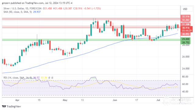 如果银价跌破30.90美元水平,则将向50移动均线29.93美元移动。