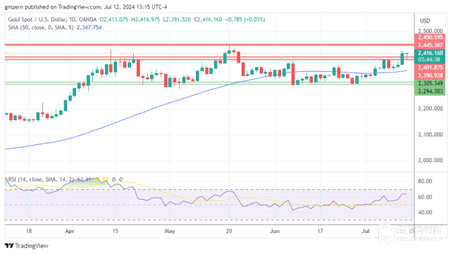 【华通网7月15日讯】•金价成功攀升至2400美元上方。