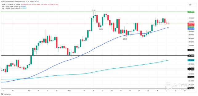 此外,中间趋势指标或50日移动均线也非常重要,因为自3月初以来,它基本上引导市场走高。周二的移动均线30.07美元是主要支撑位,也是大幅突破的潜在触发点。如果黄金下跌,那么这种支撑将会失效。