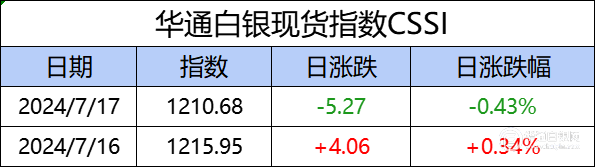 华通白银现货指数cssi走势日报,今日指数1210.68,日涨跌-5.27,日涨跌-0.43%