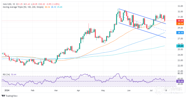 •尽管有所下跌,但白银仍保持上行倾向,50日移动均线支撑位为30.12美元。