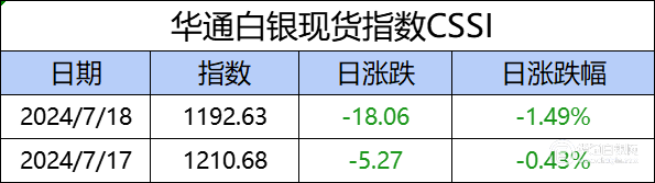 华通白银现货指数cssi走势日报,今日指数1192.63,日涨跌-18.06,日涨跌-1.49%