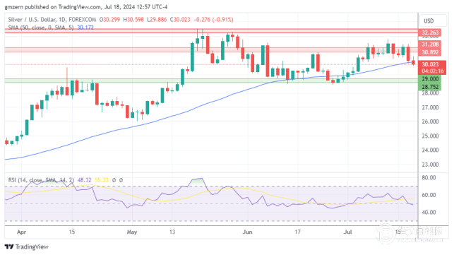 如果银价跌破30美元,则将向最近的支撑位28.75-29.00美元移动。