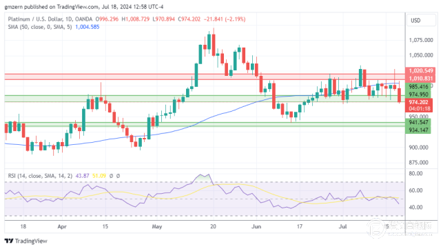 目前,铂金正试图收于975-985美元支撑位下方。如果这次尝试成功,则将向下个支撑位935-940美元移动。