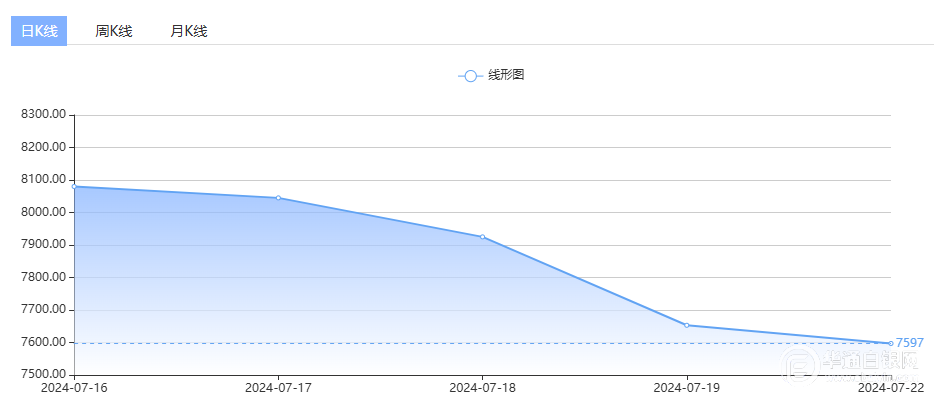 7月22日,上海华通铂银国标一号银定盘价报7670元/千克,较上一 交易日上涨17元/千克。
