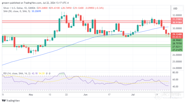 跌破28.75美元将推动银价向下一个支撑位27.20-27.50美元前进。