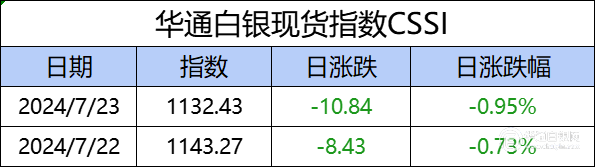 华通白银现货指数cssi走势日报,今日指数1132.43,日涨跌-10.84,日涨跌-0.95%