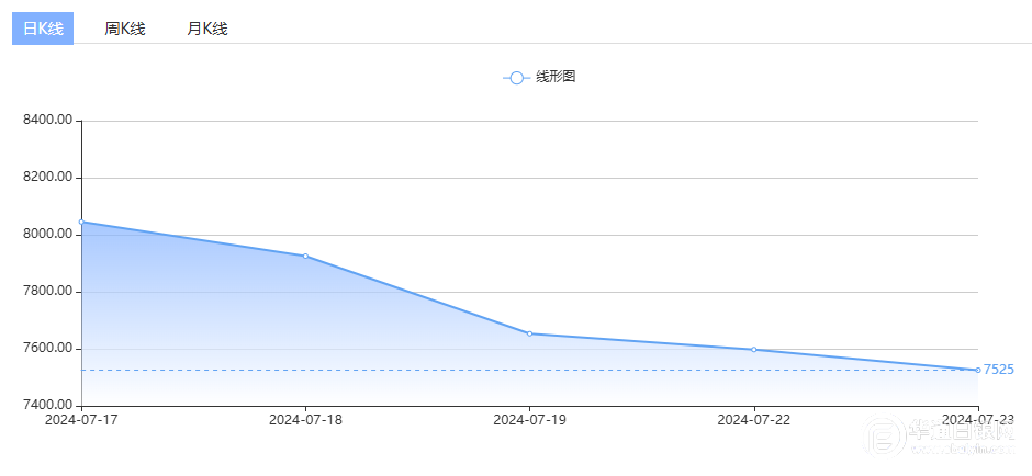 7月23日,上海华通铂银国标一号银定盘价7651元/千克,较上一交易日上涨54元/千克。