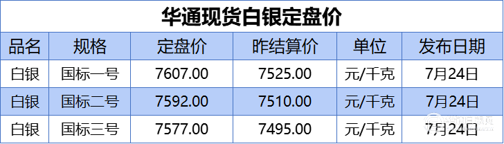 上海华通现货白银定盘价:一号国标、二号国标、三号国标如下: