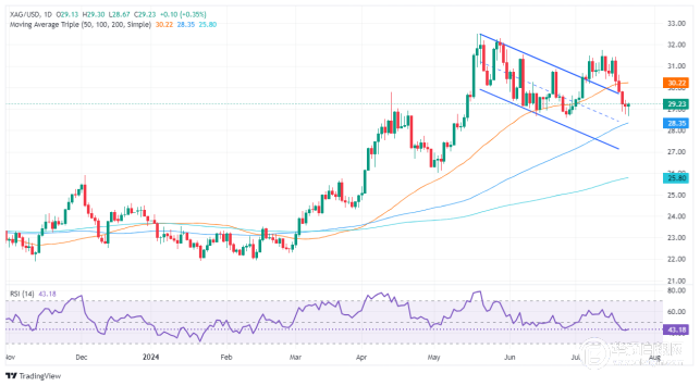【华通网7月24日讯】•银价报29.22美元,上涨0.40%;“锤子”形态暗示白银在29.00美元上方的强势。