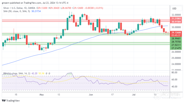 值得注意的是,白银多次尝试收于28.75美元-29.00美元支撑位下方,但都未果。如果白银能够收于29.00美元上方,则将向50均线30.21美元移动。