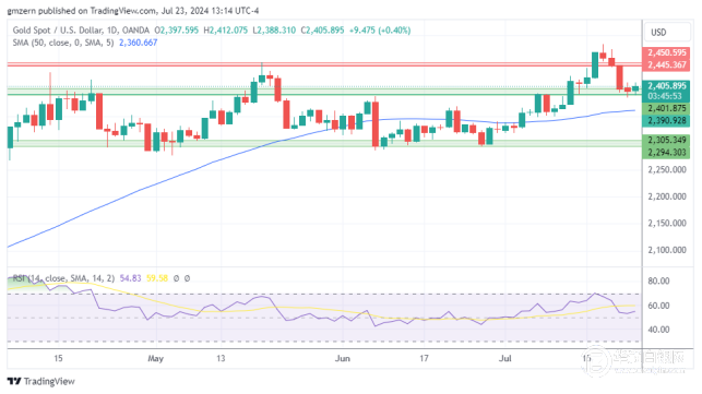 如果金价保持在2400美元上方,则将向最近的阻力位2445-2450美元前进。