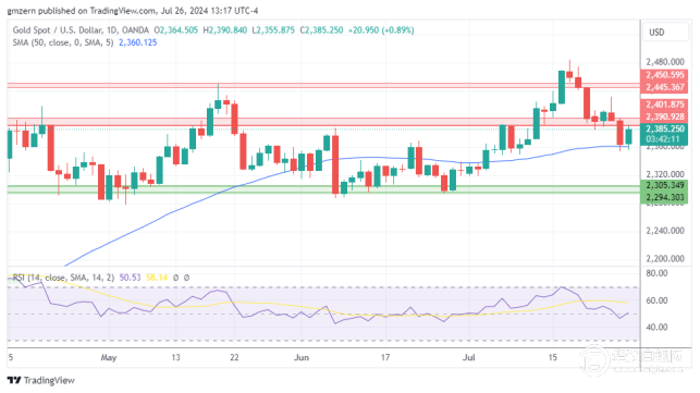 如果金价攀升至2390-2400美元的阻力位上方,则将向下一个阻力位2445-2450美元移动。