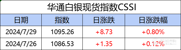 华通白银现货指数cssi走势日报,今日指数1095.26,日涨跌 8.73,日涨跌 0.80%