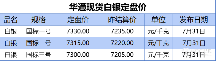 上海华通现货白银定盘价:一号国标、二号国标、三号国标如下: