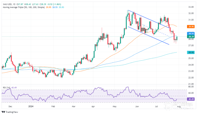 【华通网7月31日讯】•银价从以色列真主党冲突期间的日低点27.63美元反弹至28.00美元上方。