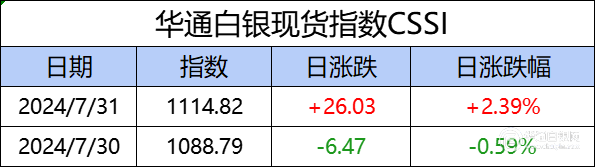 华通白银现货指数cssi走势日报,今日指数1114.82,日涨跌 26.03,日涨跌 2.39%