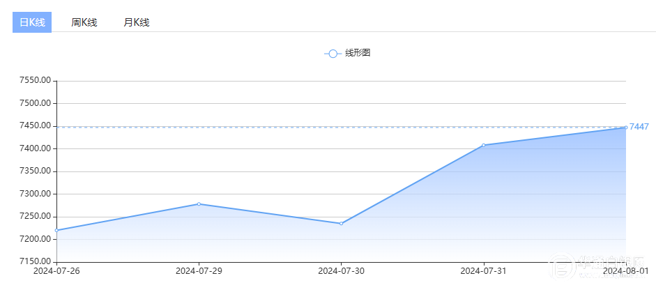 8月1日,上海华通铂银国标一号银定盘价报7503元/千克,较上一交易日上涨95元/千克。