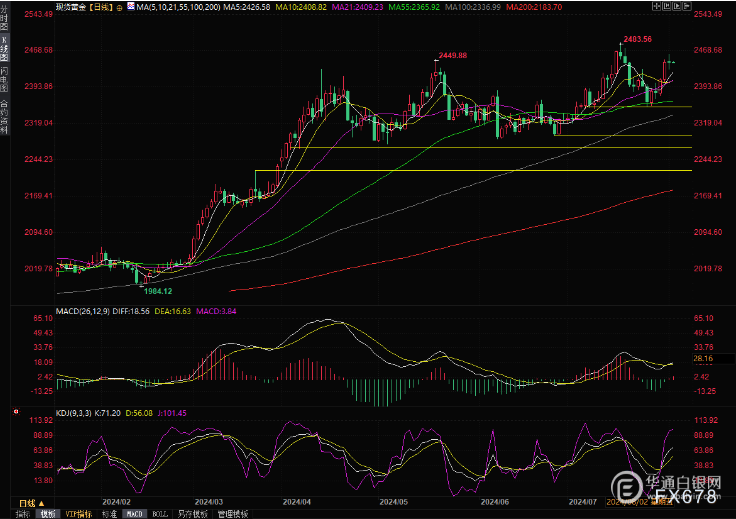 【华通网8月2日讯】周五(8月2日)亚市,现货黄金窄幅震荡,目前交投于2445美元/盎司附近。金价周四在美元汇率持续反弹后回落,收报2446.20美元/盎司,盘中早些时候曾因9月降息预期和避险需求触及两周高点2462.17美元/盎司,目前市场焦点转向本周五将公布的美国非农就业数据。