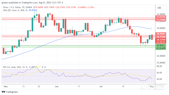 跌破28.00美元将推动银价向27.20-27.50美元支撑位靠拢。