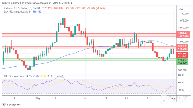 如果铂金回落至960美元下方,则将向最近的支撑位935-940美元移动。