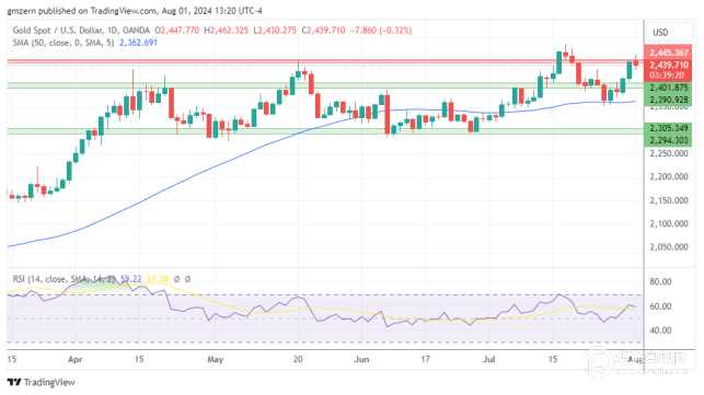 如果金价跌破2430美元的水平,则将向最近的支撑位2390-2400美元移动。