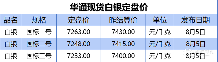 上海华通现货白银定盘价:一号国标、二号国标、三号国标如下: