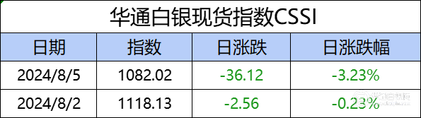 华通白银现货指数cssi走势日报,今日指数1082.02,日涨跌-36.12,日涨跌-3.23%