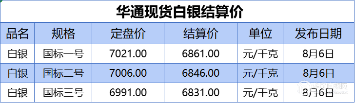 上海华通现货白银结算价:一号国标、二号国标、三号国标如下: