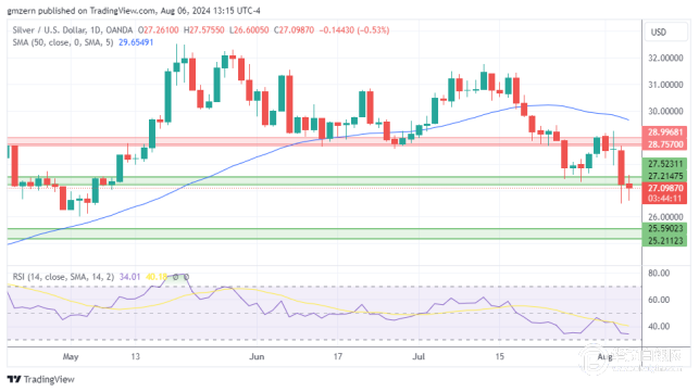 从技术面来看,银价需要回升至27.50美元上方,才有机会在短期内获得上行动能。