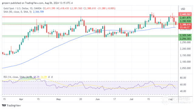 如果金价跌破2390美元,则将向50日移动均线2366美元前进。