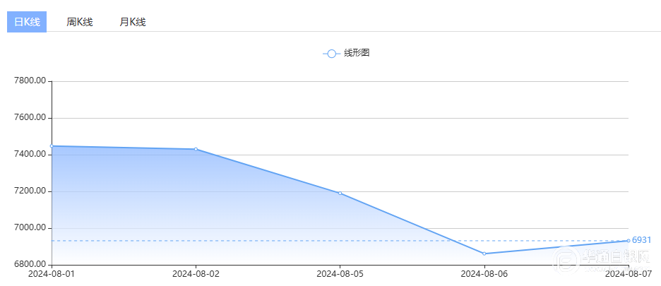 8月7日,上海华通铂银国标一号银定盘价报6884元/千克,较上一交易日上涨23元/千克。