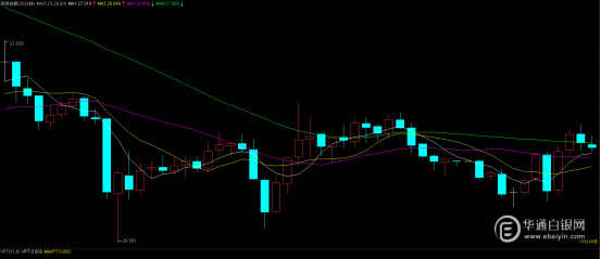 【华通网8月7日讯】周三(8月7日),亚市盘交易时段,现货白银震荡走高,亚市尾盘加速反弹,一度突破至27.26美元/盎司,欧市盘初交投在27美元附近。亚市早盘,银价一度跌至26.75美元附近。