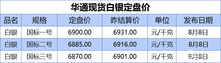 上海华通现货白银定盘价:一号国标、二号国标、三号国标如下: