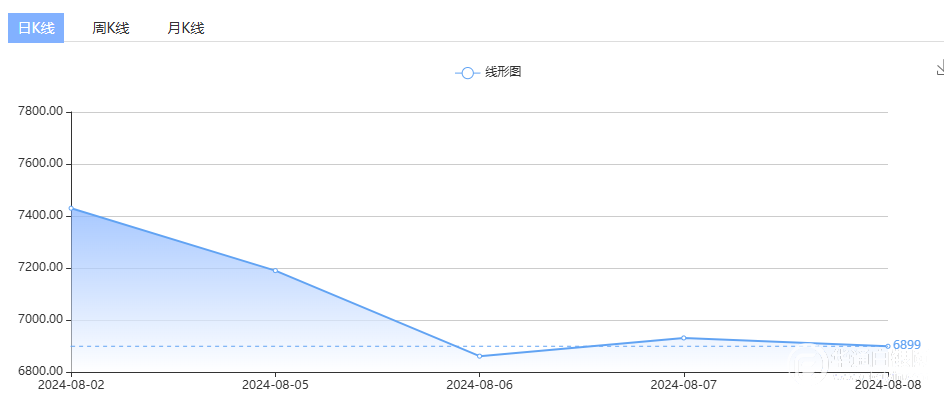 8月8日,上海华通铂银国标一号银定盘价报6900元/千克,较上一交易日下跌31元/千克 。