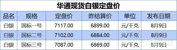 上海华通现货白银定盘价:一号国标、二号国标、三号国标如下: